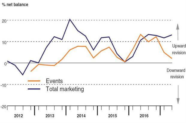Van de ondervraagden 'eindklanten' gaf 19 procent in het onderzoek aan een groeind eventmarketingbudget te blijven verwachten. 17 procent kondigde een krimpverwachting af. In het artikel wordt vooral gesproken over de lange groeitermijn, dat volgens de auteurs duidt op aantoonbare ROI's. Aan de andere kant wordt de gekrompen groei toegewezen aan de onderzekerheid in 'the UK'.