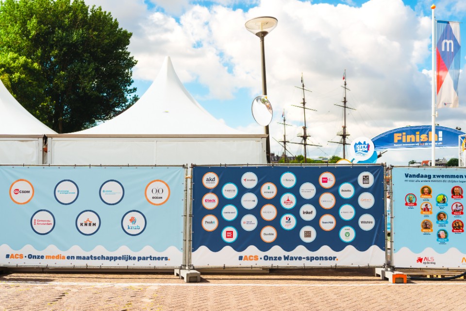 Tijdens het evenement in hartje Amsterdam hebben we een meetingpoint neergezet waar alle wave-sponsoren met elkaar konden netwerken, elkaar en hun bedrijven beter te leren kennen. Daar kon je ook foto’s maken in de ACS fotohokjephotobooth. We zijn ook echt samen gaan zwemmen en hebben elkaar opgewacht na het finishen. De dag werd afgesloten door lekker samen met elkaar te eten en te proosten op een prachtig evenement en traject.”