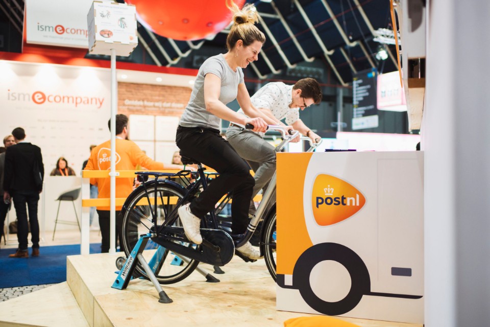 Boozed is van mening dat een hybride evenement niet alleen een combinatie is van live en online evenementen maar juist de interactie met de bezoeker. Een voorbeeld van deze hybride vorm is hun werk voor PostNL, waar bezoekers op de Webwinkel Vakdagen op een speelse manier zelf de sportiefste PostNL-bezorger konden zijn of mooie prijzen konden winnen vanuit de pakkettenkluis. (zie foto)