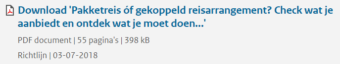 02-09-2019 - Er kwamen gek genoeg de laatste twee weken een aantal vragen binnen over de Richtlijn pakketreizen waar EventBranche.nl en diverse brancheorganisatie al geruime tijd geleden over gepubliceerd hebben. Toen bleef het stil, nu is er blijkbaar toch hulp nodig. En die hulp is er. De meest praktische toepassing is de test op overheid.nl.
