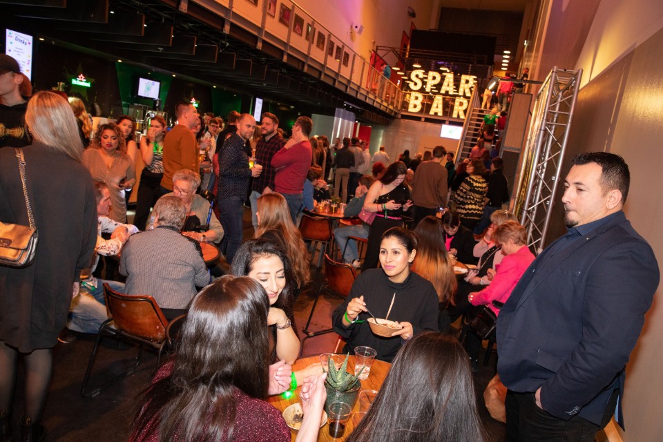 En dan het het feest zelf. Rond 17.00 uur kwamen de bussen uit alle windstreken aan. De SPAR-medewerkers konden in de grote foyer rustig even met elkaar zitten om even bij te kletsen. Het grote feest werd afgetrapt met een toespraak van John van der Ent, CEO SPAR Nederland en Albert-Jan Kleis, voorzitter SPAR Detaillisten Coöperatie. Daarna kwamen de ballonnen en knalden de confetti-kanonnen. Het feest kende een daverende start met Gerard Joling en een onvergetelijk slot met een optreden van Kris Kross Amsterdam. In de tussentijd konden de gasten genieten van tal van andere optredens, konden ze een speciaalbiertje in de SPAR-bar bar of in het restaurant rustig met collega's bijkletsen met een hapje en een drankje. Het overgrote deel bleef in de grote zaal om maar niets van het jubileumfeest te hoeven missen.