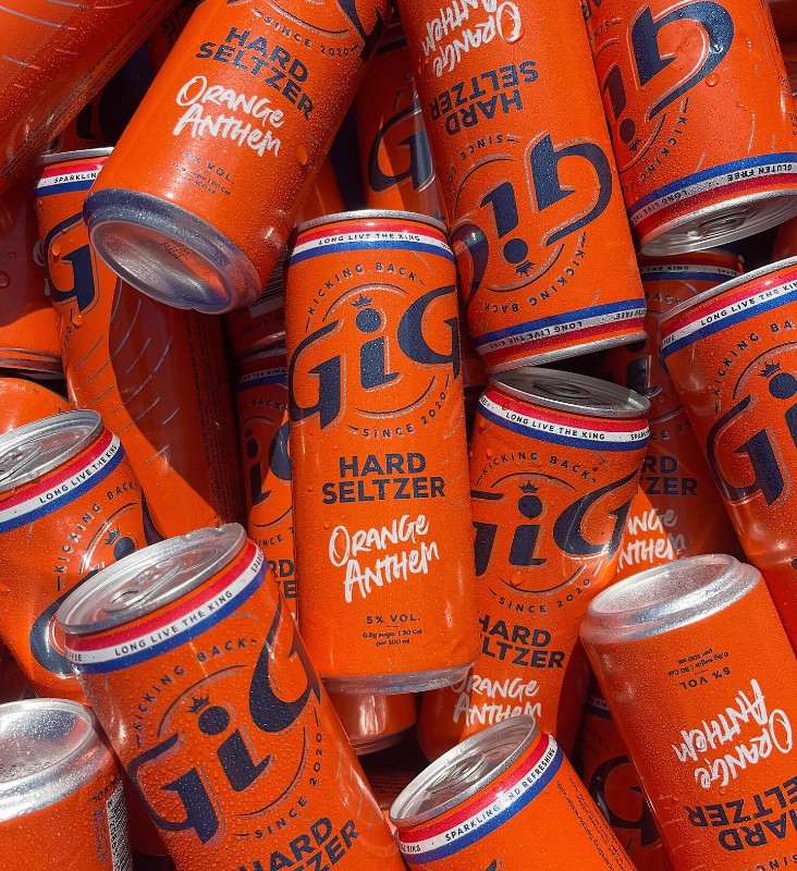 Speciaal voor Koningsdag 2024 lanceert GiG de Orange Anthem met een verfrissende orange smaak om de ultieme Koningsdag mee te beleven. Bob: ‘De Orange Anthem vliegt de deur uit en dat is mooi om te zien. Dat snap ik ook wel, want de verbeterde smaak is, al zeg ik het zelf, nu nog lekkerder. Dat is trouwens iets wat we altijd horen dat onze smaken zo goed zijn - echt gaaf!’