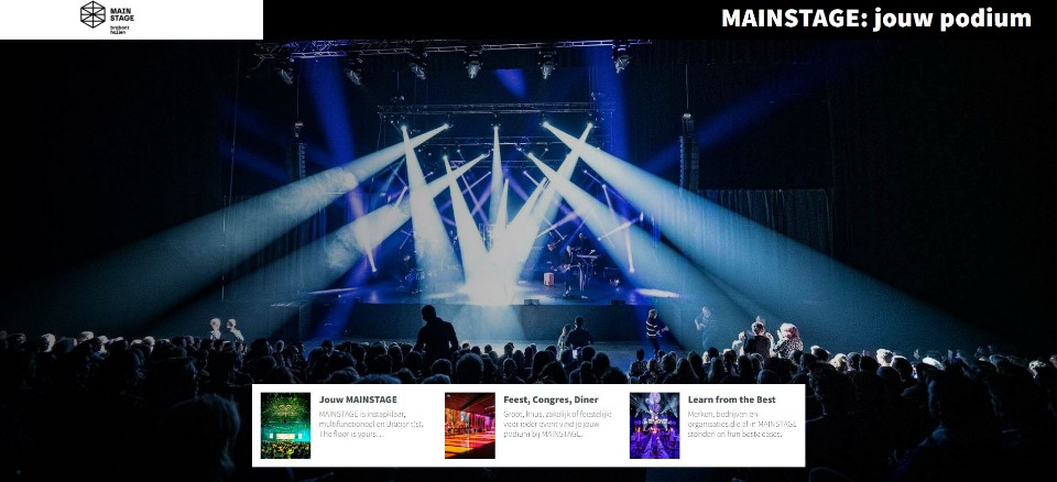 Grenzend aan zowel de Brabanthallen als 1931 Congrescentrum is MAINSTAGE in Den Bosch een locatie waar veel samenkomt. Zo ontstaat een moderne blackbox met alle aanwezige faciliteiten, kennis en expertise voor jouw business event. Waar topproducties uit de live entertainment wereld hun plek vinden, kan ook 'de stage' voor jouw zakelijke event neergezet worden. MAINSTAGE is één van die locaties waar bijna alles al aanwezig is en waar alles mogelijk is. In dit online magazine een kijkje achter de schermen. MAINSTAGE kan jouw podium zijn!