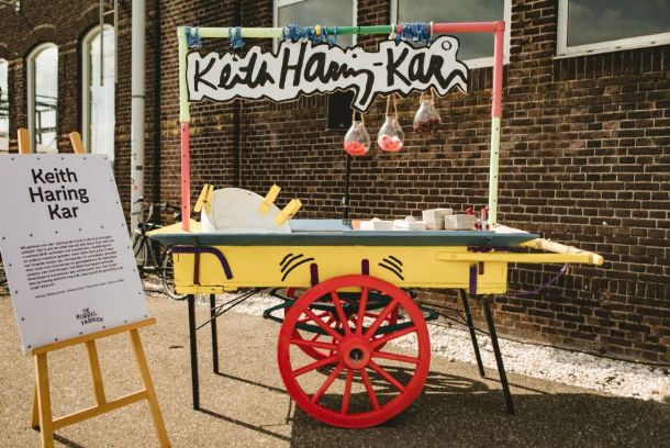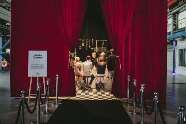 Bij aankomst werden gasten ontvangen met een Magic punch geserveerd uit een metershoog XXL cocktailglas. Voordat men in groepjes naar het Smaaktheater met de flamboyante van kop-tot-kont chef Nel Schellekens werd geleid, kon men zich tegoed doen aan Hollandse Nieuwe. “Maar dan wel een héle speciale”, licht Kim toe. “Onze Keith Haring Kar is een ode aan de kunstenaar; zowel de kar zelf als de geserveerde haring is een klein kunststukje.”