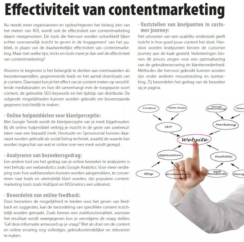 23-04-2015 - TOOLS CONTENTMARKETING - De tools voor het meten van de ROI van contentmarketing lijken tot nu toe voornamelijk inzicht te geven in de 'engagement' van het publiek. Maar met welke tips, tricks en tools meet je dan wel de effectiviteit van contentmarketing? In het eerste EventBranche Magazine van dit jaar komt EventBranche met 4 tools.