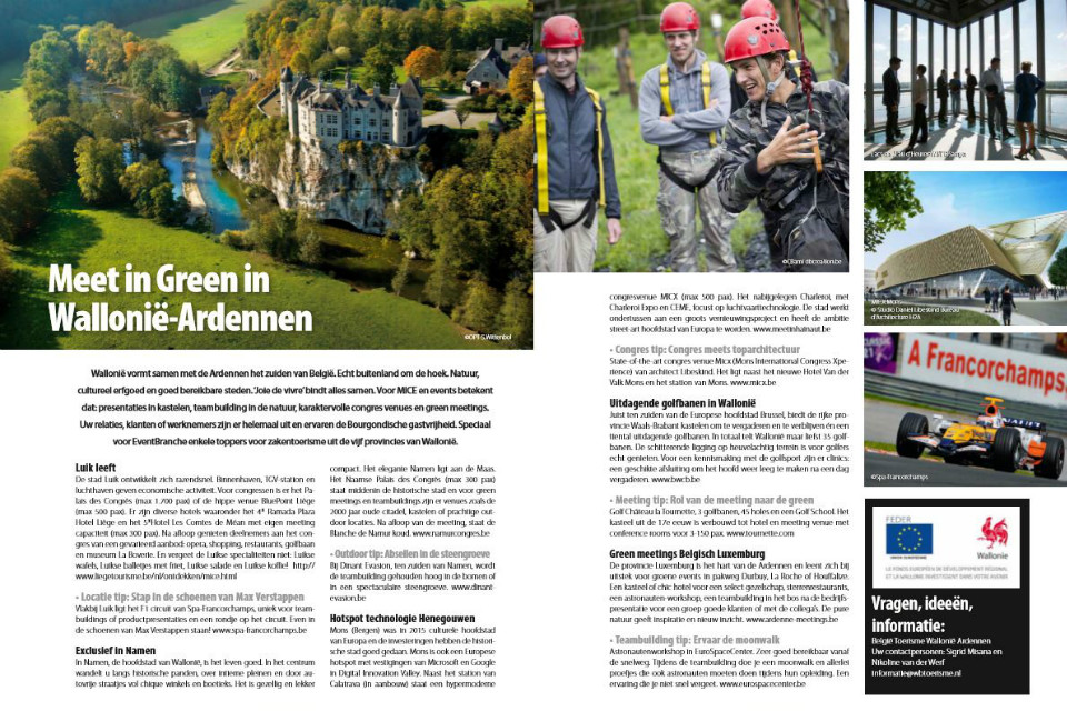 15-12-2017 - Het zuiden van België is echt buitenland om de hoek. Natuur, cultureel erfgoed en goed bereikbare steden. Voor MICE en Events betekent dat: presentaties in kastelen, teambuilding in de natuur, karaktervolle congres venues en green meetings. Verkeersbureau België Toerisme komt met 5 MICE-tips, van outdoor tot teambuilding, in de vijf provincies van Wallonië.