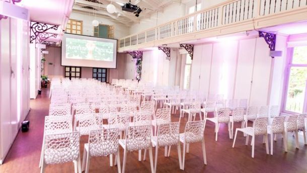 In diner opstelling met ronde of lange tafels is de ruimte geschikt voor 90 – 100 personen. In feestopstelling is de Robbenzaal geschikt voor 250 personen. Creëer een onderwatersfeer, kies voor een lichtshow met clubuitstraling of vertel uw eigen verhaal op de beeldschermen aan de wanden de zaal.