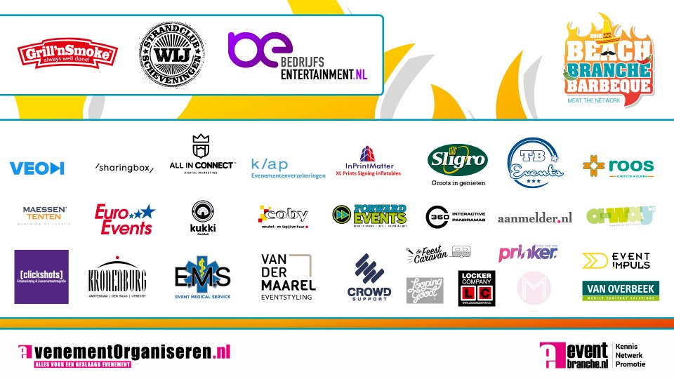 De 21e editie van de BeachBrancheBarbecue wordt mede mogelijk gemaakt door de volgende partners: