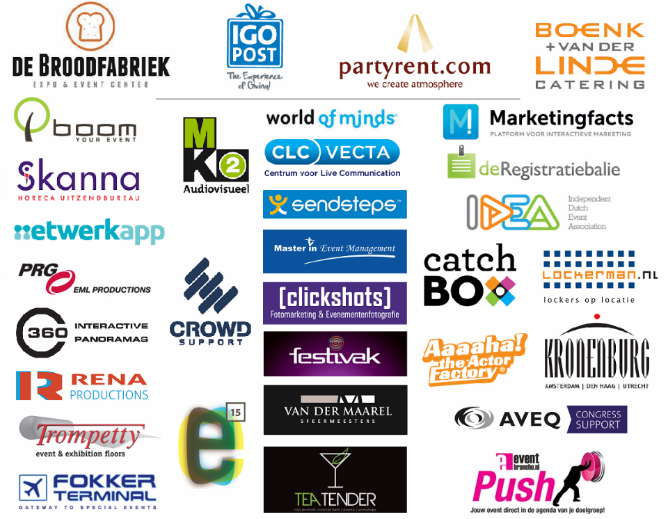 De partners (waarbij één logo helaas niet meer meegenomen kon worden, maar wij zijn Rozet Plantenverhuur erg erkentelijk dat zij de locatie hebben ingericht met prachtige planten):