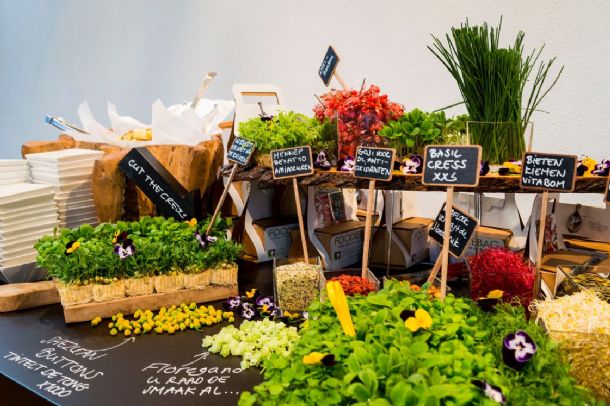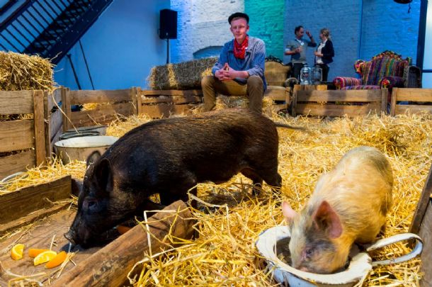 Het menu van de dag was 99% vegetarisch, zodat dit groene afval regelrecht zijn weg vond als voer voor de biggetjes die in het hooi lagen van het speciaal voor het evenement opgestelde ‘No meat, just greet’ boerderijtje. DeBorrelFabriek adopteert deze twee biggetjes en hoopt voor hen binnenkort een plekje te vinden in de buurtboerderij van de Westerparkbuurt. Ook kregen alle gasten een foodie bag mee, dit kartonnen boxje werkt volgens het oude doggiebag principe en aan de gasten werd actief gevraagd of zij hun lievelingsgerecht mee naar huis wilden nemen.