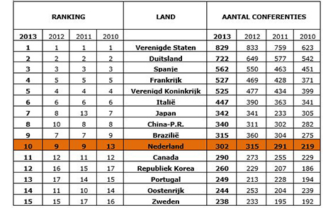 In 2013 bezochten ruim 200.000 internationale congresgangers ons land en dat is goed voor een economische waarde van ruim 200 miljoen euro.