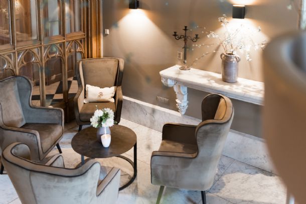 'Door de combinatie van neutrale kleuren en veel natuurlijke materialen zoals fluweel, grof linnen en juten heeft het interieur een warme uitstraling. Eyecatchers in het kasteel zijn de schilderijen op fluweel van Mint Faas. Haar kasteelvrouwen in een modern jasje symboliseren perfect de verbinding tussen heden én verleden. Last but not least kreeg ook de kasteelkelder een volledig nieuwe look. Hier is Delfts Blauw het thema. Dat komt stijlvol terug in bordjes, kussens en stoelhoezen.