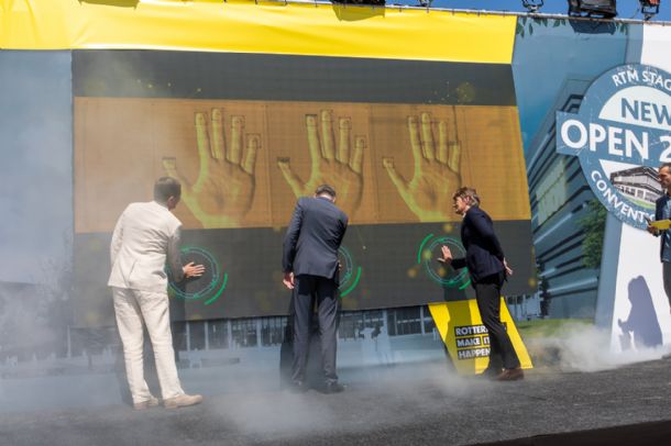 Wethouder Adriaan Visser, directeur Ahoy Peter van der Veer en directeur Heijmans Vastgoed Dick Laheij gaven het startsein onder het toeziend oog van vele relaties. In het vierde kwartaal van 2020 worden het nieuwe congrescentrum en de muziekzaal in gebruik genomen. Het ontwerp is van Kraaijvanger Architects.Peter van der Veer, Directeur Ahoy: "Ik ben ongelofelijk trots dat we na jaren van voorbereiding vandaag het officiële startsein hebben gegeven van de bouw. In januari 2021 zullen we ons 50-jarig jubileum op deze prachtige nieuwe plek vieren; ik kijk er enorm naar uit!”