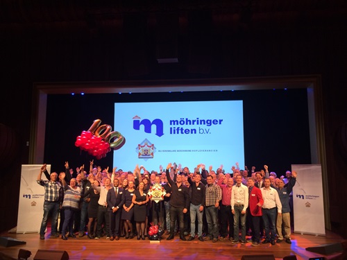 Naast al het personeel, oud-personeel, oud-directeuren, relaties, klanten en leveranciers van Möhringer Liften, kwam ook Burgemeester Bernt Schneiders van Haarlem langs op het jubileumevenement.