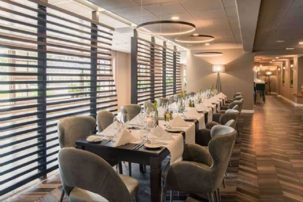 Ook het dinerrestaurant heeft een ware metamorfose ondergaan. Frisse kleurtinten, stijlvol meubilair gecombineerd met een moderne inrichting geven het restaurant een warme sfeer. Door het leggen van accenten en het toevoegen van planten is meer privacy gecreëerd. Door de speelse indeling is het ook zeer geschikt voor individuele gasten, die Woudschoten steeds meer komen bezoeken. Daarnaast is het privé restaurant volledig vernieuwd. Een sfeervolle plek waar u in alle rust kunt lunchen of dineren met zakenrelaties, collega’s, vrienden of familie. Dit deel van het restaurant beschikt over een prachtige open haard, een eigen terras en is exclusief te boeken voor ongeveer 27 gasten.