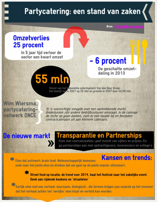 30-05-2014 - PARTYCATERING - EventBranche.nl zet meer en meer in op infographics. 'Die vinden we over de hele wereld op het internet, maar we gaan ook zelf investeren in simpele overzichten van interessante content. Heeft u een onderwerp waar wij in moeten duiken? Laat het horen.' Hierbij een infographic over partycatering: