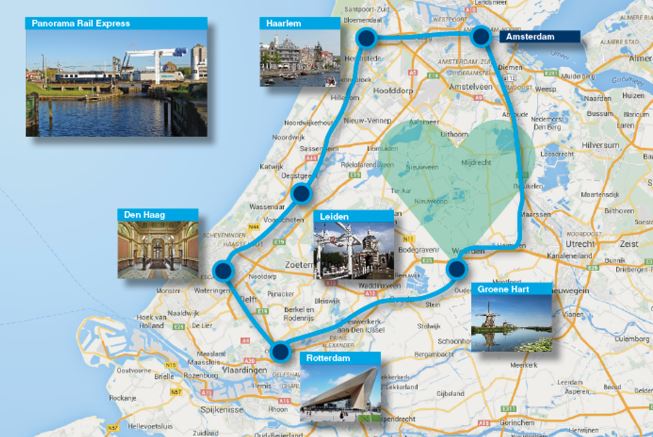 Het Panorama Rail Restaurant rijdt tussen de reguliere treinen van NS, Arriva en andere spoorvervoerders. Railpromo en de onafhankelijke infrastructuurbeheerder ProRail hebben daartoe een dienstregeling voor het treinrestaurant opgesteld. Vanuit Amsterdam Centraal wordt een vaste, ten minste 2.45 uur durende route gereden via Haarlem, Leiden, Den Haag, Rotterdam, Gouda en Breukelen. Daarbij worden onder meer de bloembollenvelden bij Lisse en het Groene Hart gepasseerd. Het uitzicht varieert van drukke stadscentra tot uitgestrekte weidegebieden en van historische stadsranden tot moderne industriële complexen.