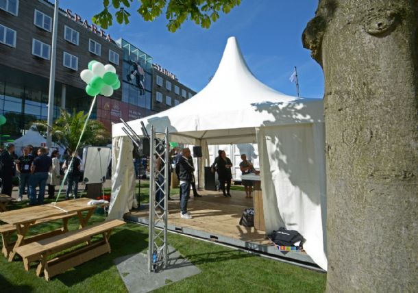 Onlangs mocht Tentverhuurmakelaar een mooi project uitvoeren in opdracht van Van der Linde Catering en Evenementen. Naast Het Kasteel (Stadion voetbalclub Sparta) in Rotterdam werd een compleet ‘bedrijfsfestival’ opgebouwd. Pagodetenten waarin bedrijfseenheden zich presenteerden, een alu-tent als escape-room, toiletwagens en een kassa-unit; allen volledig voorzien van geblindeerde hekken rondom. Een mooi totaalproject waarin Tentverhuurmakelaar vanaf het begin bij betrokken is geweest en op deze wijze een goed en vakkundig advies heeft kunnen verzorgen.