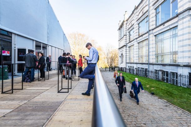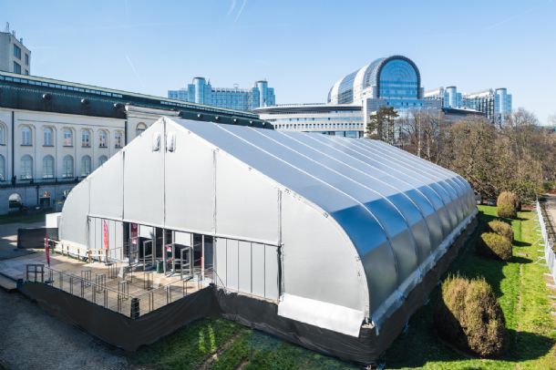 Trimex koos voor Veldeman omwille van de kwaliteit, het uitgebreide aanbod, de properheid van de materialen en de stiptheid van montage en demontage. De TFS van 30m bij 50m beantwoordde aan alle criteria. Door zijn unieke vorm en hoge dakhelling van 25° beschikt deze tentstructuur over een hoge binnenruimte zodat de plaatsing van een podium en groot scherm geen probleem vormde. De nokhoogte van de tent was maar liefst 11,5m. De ophanglasten van de TFS zijn relatief hoog, wat veel mogelijkheden gaf voor de bevestiging van verlichting en technieken aan de dakspanten. Dankzij de zwarte binnenzijde was het helemaal donker vanbinnen en kwamen de presentaties doorheen de dag perfect tot hun recht.
