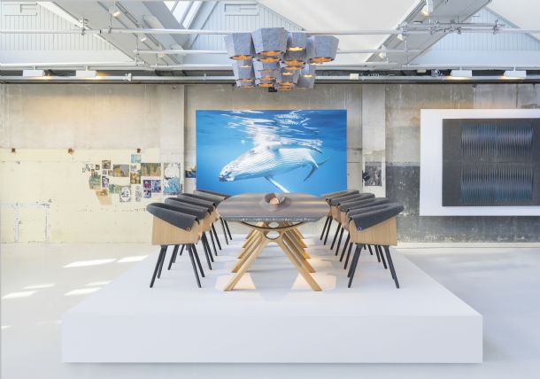 Onder dit motto ontplooit Plastic Whale haar activiteiten. “We creëren economische waarde uit plastic afval met de betrokkenheid van zoveel mogelijk mensen”, vertelt initiatiefnemer Marius Smit. “Elk jaar vissen we samen met duizenden mensen naar plastic uit de grachten van Amsterdam en Rotterdam. Hier hebben we al elf design sloepen van gebouwd. Met het kantoormeubilair kunnen we een nog grotere impact maken." Het opgeviste plastic mag de naam afval niet meer hebben. Janwillem de Kam van ‘furniture factory’ Vepa zegt: "Het is een waardevolle grondstof die heel goed past binnen het circulaire productieproces van kantoormeubilair. We voegen waarde toe en zorgen ervoor dat vorm en functie aansluit bij de wensen van onze klanten."