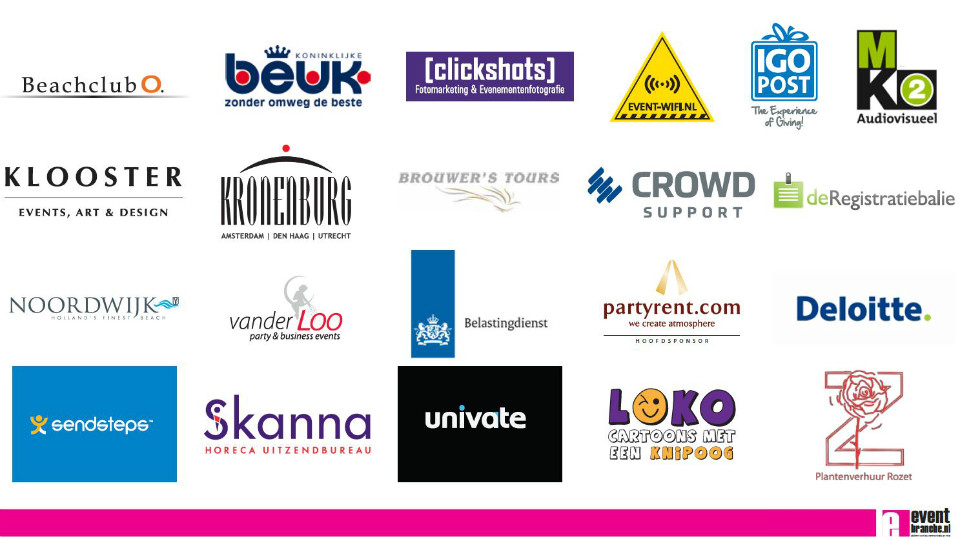 In de komende dagen zullen we een paar casusposities die behandeld zijn tijdens het congres publiceren, maar het overgrote deel blijft exclusief voor de bezoekers van het WKR Congres Noordwijk die tijd, moeite en inschrijving betaalden voor het congres. Zij ontvangen zeer binnenkort een white paper met alle info. Hieronder nog de lijst met prachtige bedrijven die allemaal een steentje of steen hebben bijgedragen om van het WKR Congres Noordwijk een succes te maken: